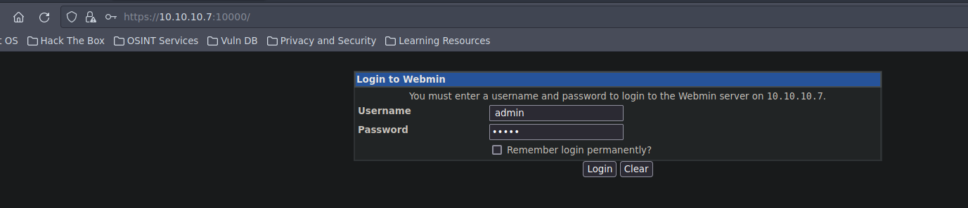 10000/tcp open http MiniServ 1.570 (Webmin httpd)