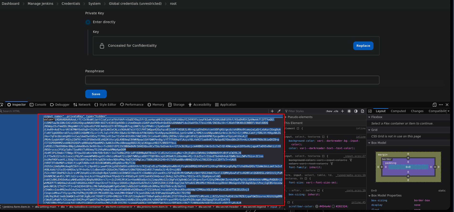 - En el panel de credenciales, hay una vulnerabilidad donde el código fuente me revela la clave privada ssh: