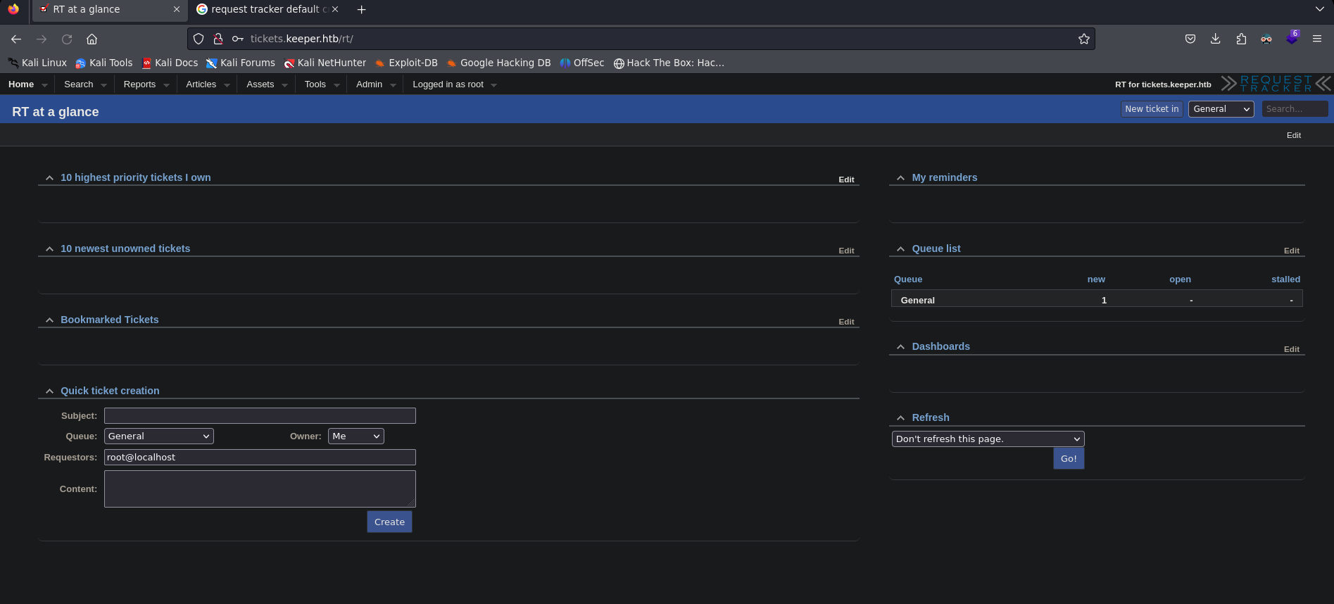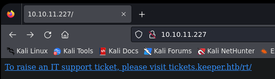 - Nos indica que para enviar una solicitud de asistencia informática, visite tickets.keeper.htb/rt/.