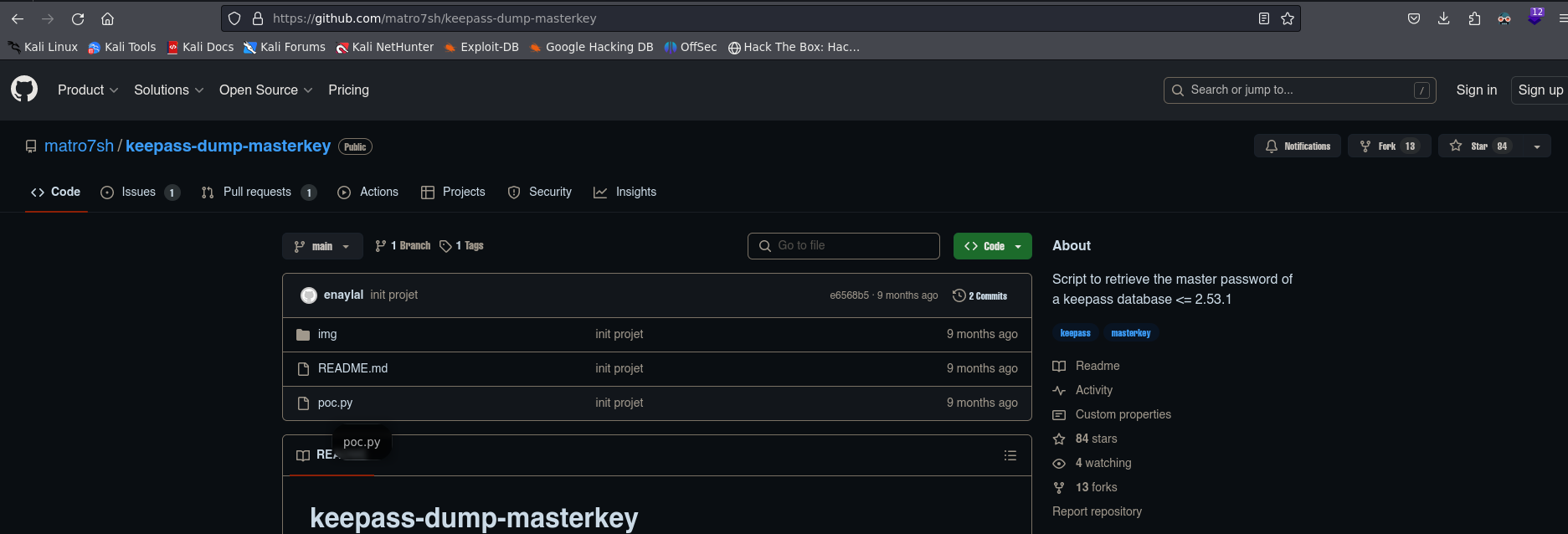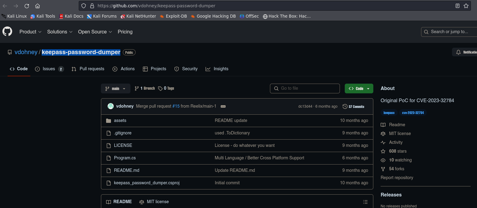 - Nos envia a una prueba de concepto https://github.com/vdohney/keepass-password-dumper y ahora trataremos de buscarla en python.