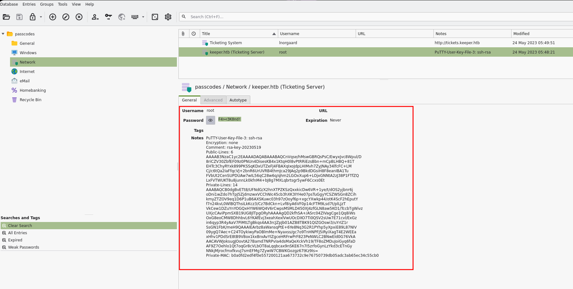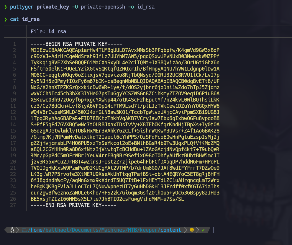 - Encontramos una para ssh como root y la vamos a probar, y no funciona, también vemos una clave de Putty que vamos a convertir en una clave privada ssh.