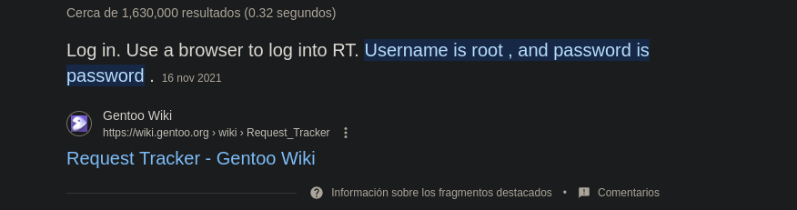 - Cuando realizamos la búsqueda vemos que nos indica algunas credenciales por defecto así que buscamos, y vemos que nos dan un usuario y contraseña por defecto, probememos!.