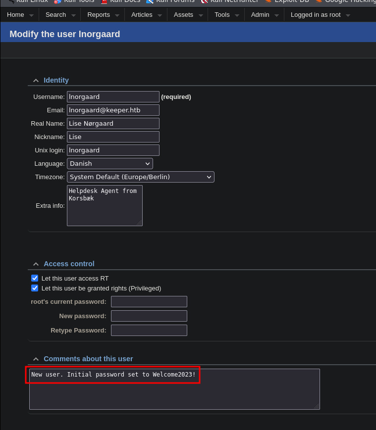 - Vemos una contraseña que podemos probar con ssh Welcome2023!, efectivamente funciona.