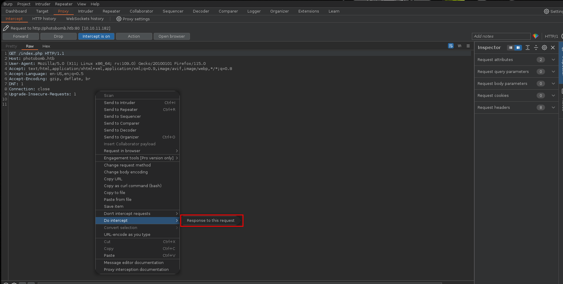 - Vamos a interceptar la petición de descarga con burpsuite para ver como se está tramitando la petición.