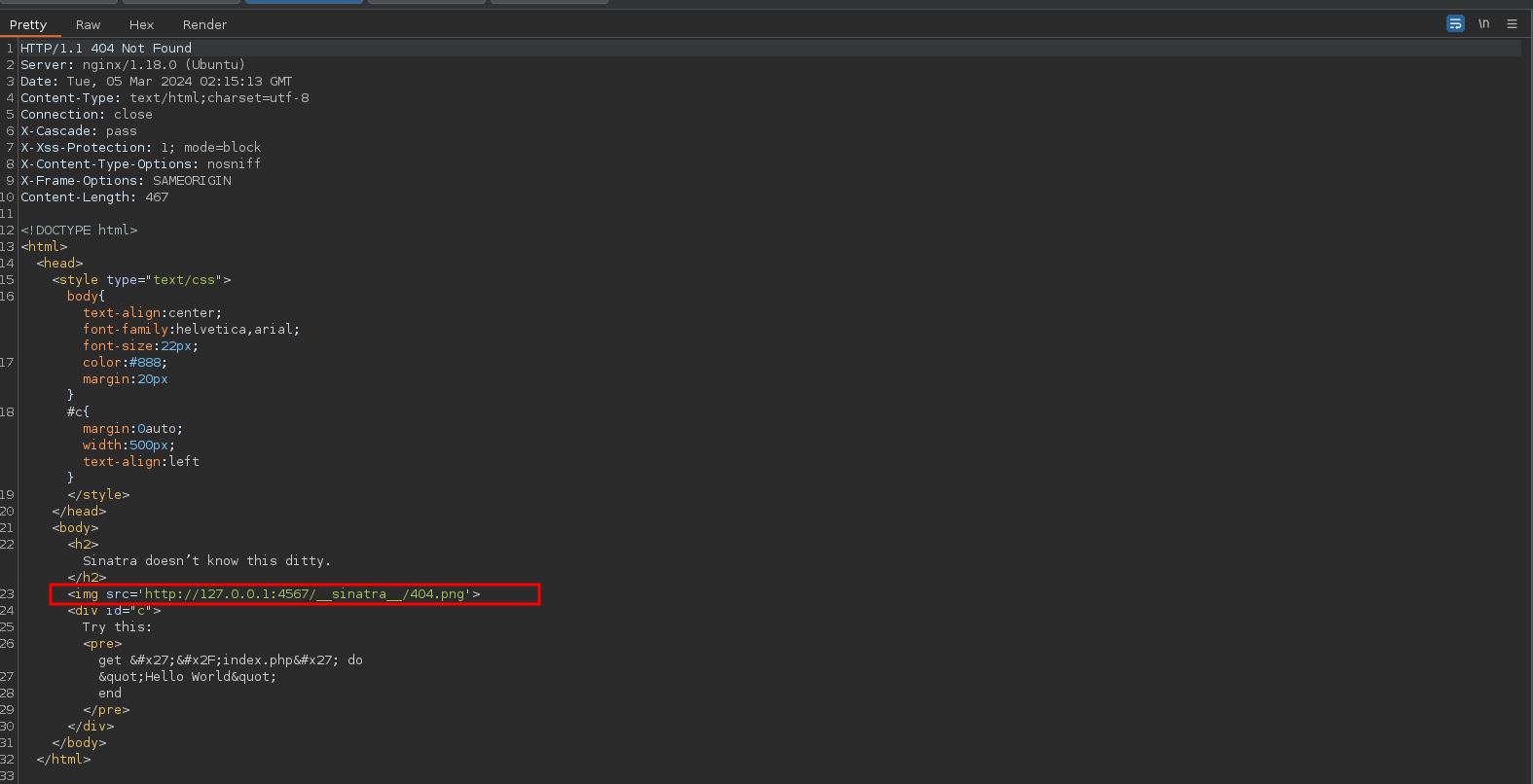 - Vemos que la esta llamando desde el localhost por el puerto 4567, veamos si existe el recurso por el puerto 80.