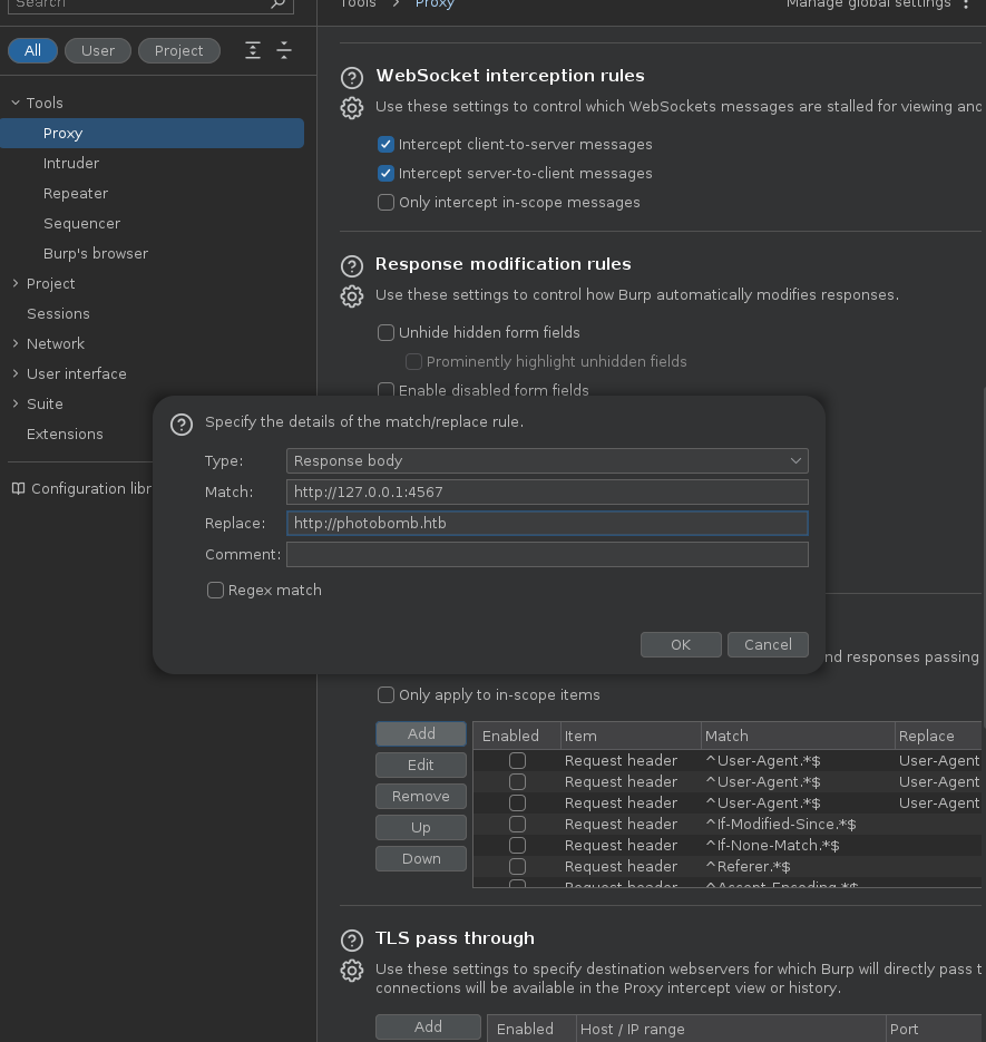 - Esta es la respuesta que vamos a cambiar, en la sección Match and replace rules realizamos el cambio.