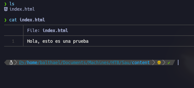 - Como vemos que esta instalado creamos un archivo index.html con el comando de bahs para entablar una reverse Shell