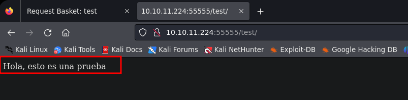 - Recargamos la url http://10.10.11.224:55555/test/