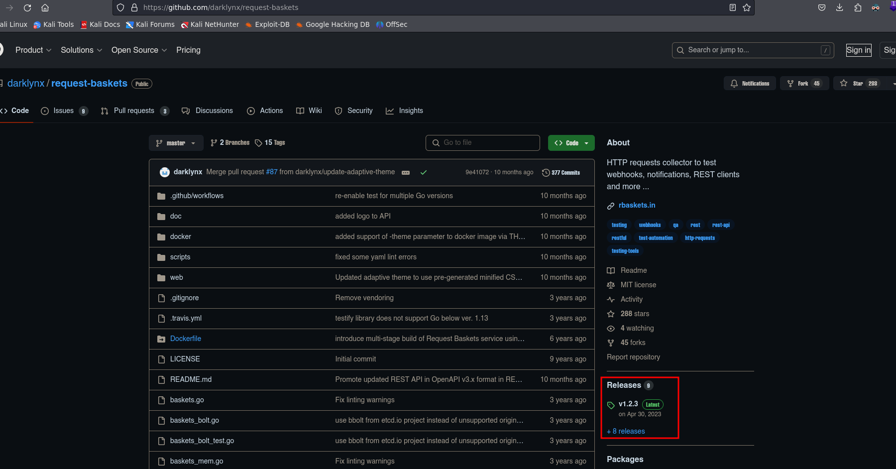 - Si lo abrimos nos lleva a repositorio de Github y nos indica que la ultima versión es la 1.2.3
